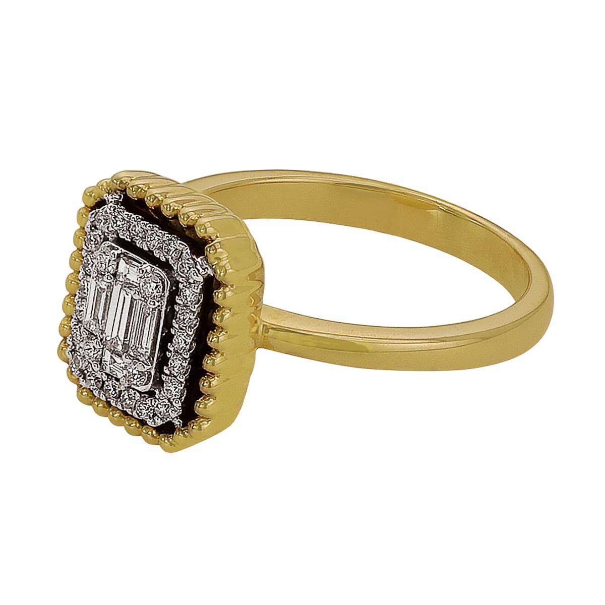 Złoty Pierścionek z Diamentami o Szlifie Bagietowym i Brylantowym pr. 585