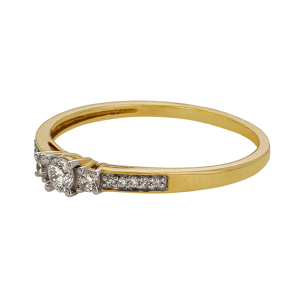 Złoty Pierścionek z Trzema Brylantami i Wysadzaną Szyną – pr. 585